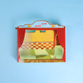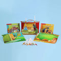تتألف حقيبة مسرحة الدمى من مسرح من الكرتون، ومجموعة من القصص والخلفيات المتنوعة، والشخصيات الكرتونية التي تناسب أحداث القصص لتجسيدها.