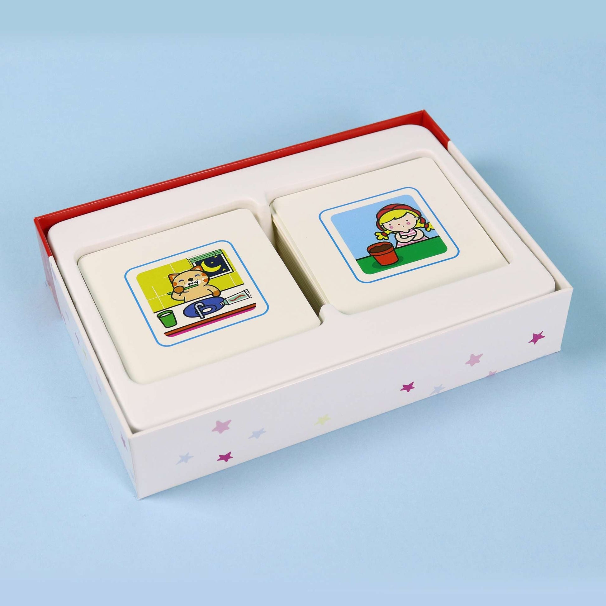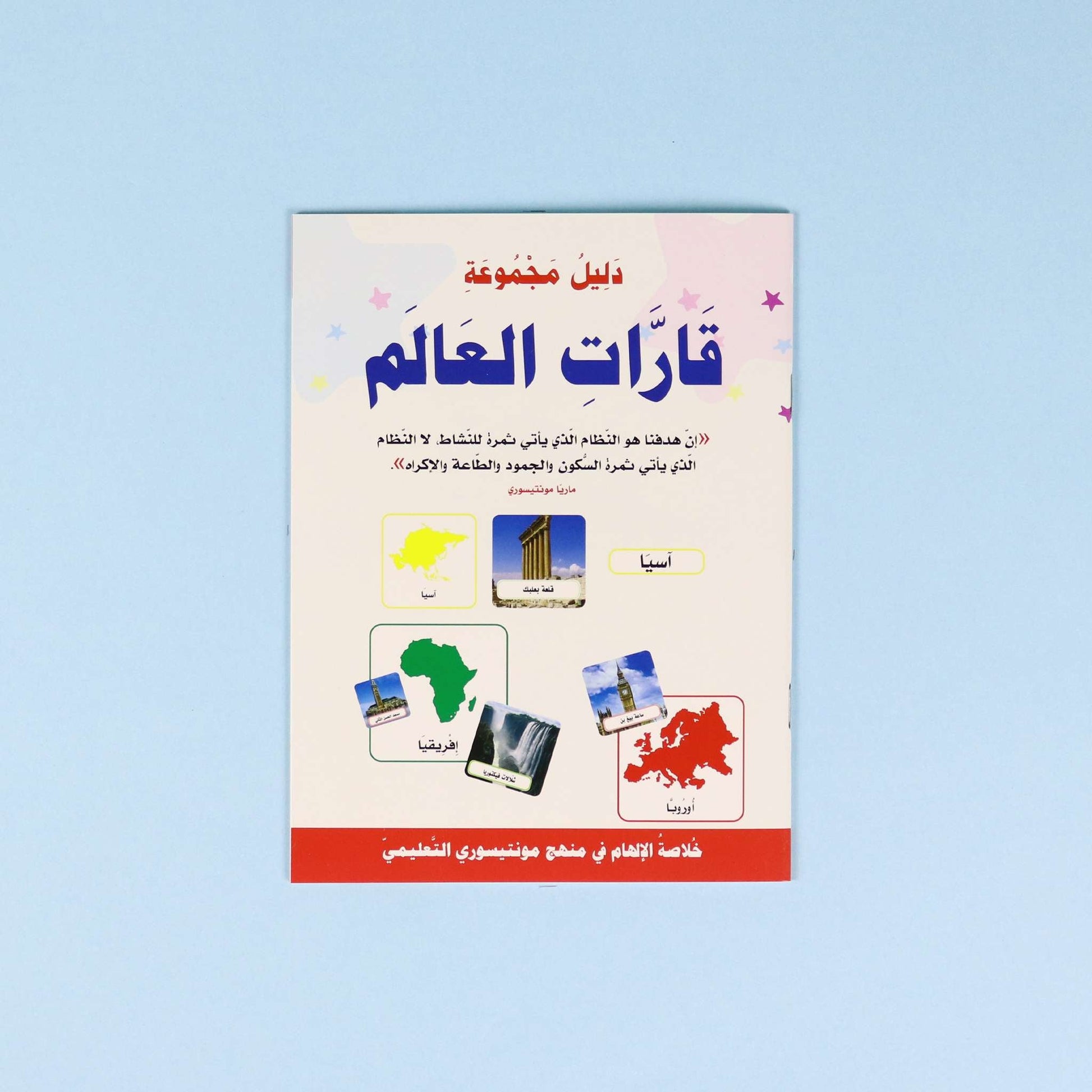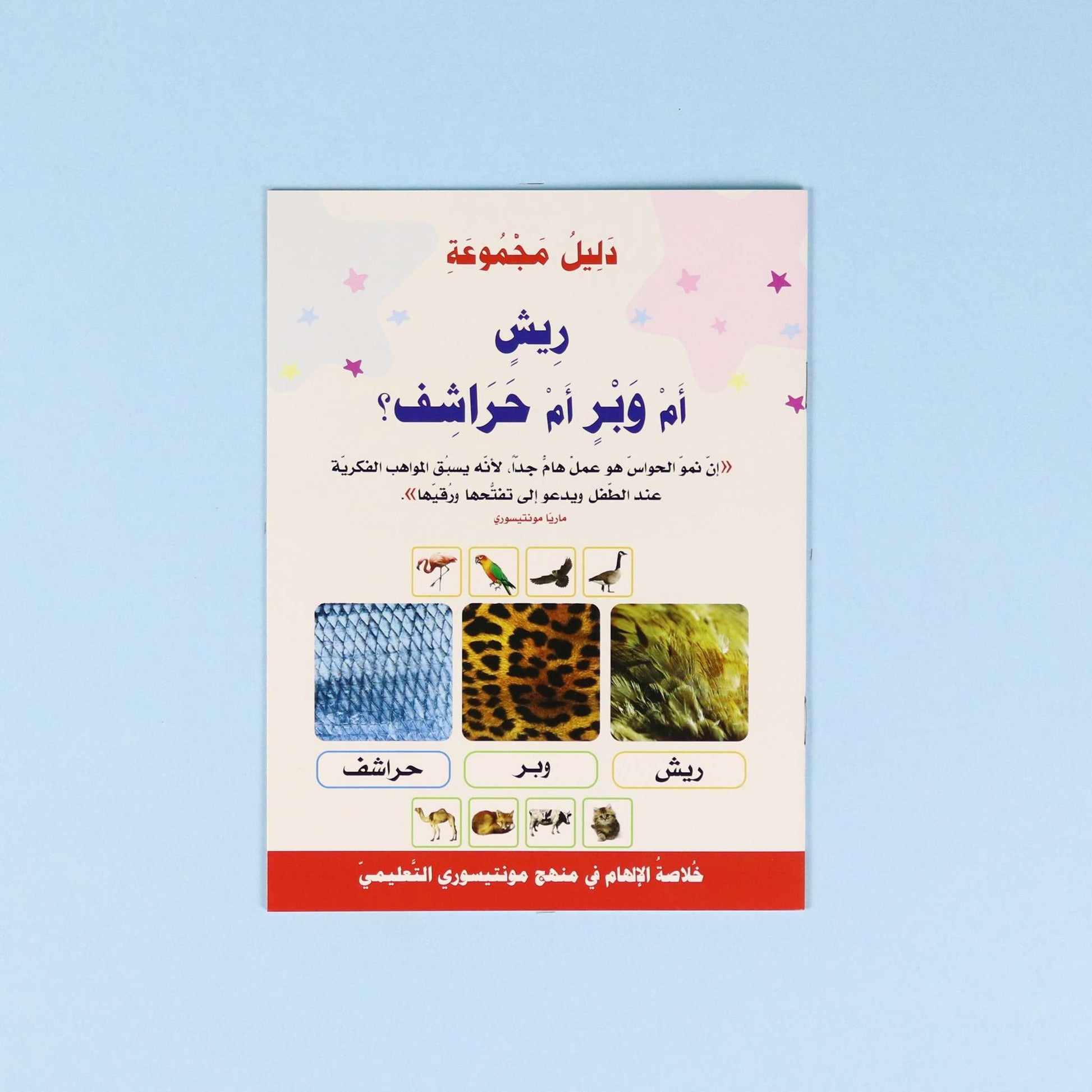 مجموعة فريدة من البطاقات التّعليمية الخاصّة بتعليم الطّفل في سنواته العمريّة الأولى، والمستمدّة من منهج الطّبيبة والتّربويّة الإيطاليّة ماريّا مونتيسوري التّعليميّ القائم على تعليم الطّفل عبر اللعب وممارسة الأنشطة التّعليميّة المتعلّقة بالحياة العمليّة. تتناول بطاقات هذه المجموعة مواضيع عديدة يتعرّف عليها الطّفل في حياته اليوميّة كالألوان والأشكال والأرقام والحروف والحيوانات والفاكهة والخضار …. إلخ، وهي مُرفقة بدليل تعليميّ يتضمّن العديد من المقترحات والمعلومات الخاصّة بكلّ موضوع، بالإضافة إلى الأنشطة الّتي يمكن أن يطبّقها الطّفل بمساعدة والديه لإغناء العمليّة التّفاعليّة.